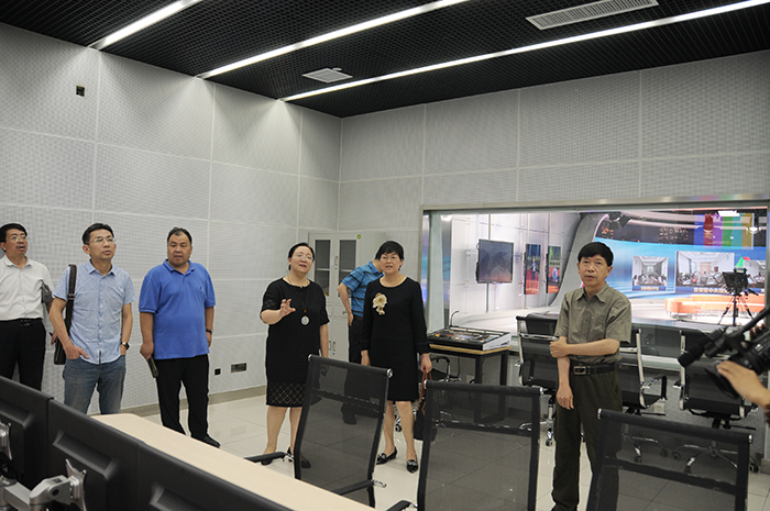 梁玉蓉副院长一行在王红叶副校长的陪同下,参观了我校文化科技园,演播中心和“一人一品”教学成果展厅。梁玉蓉副院长一行对我校理论与实践相结合的特色教学模式、突出的专业特色和作品创意以及完善的设施设备表示高度赞赏。